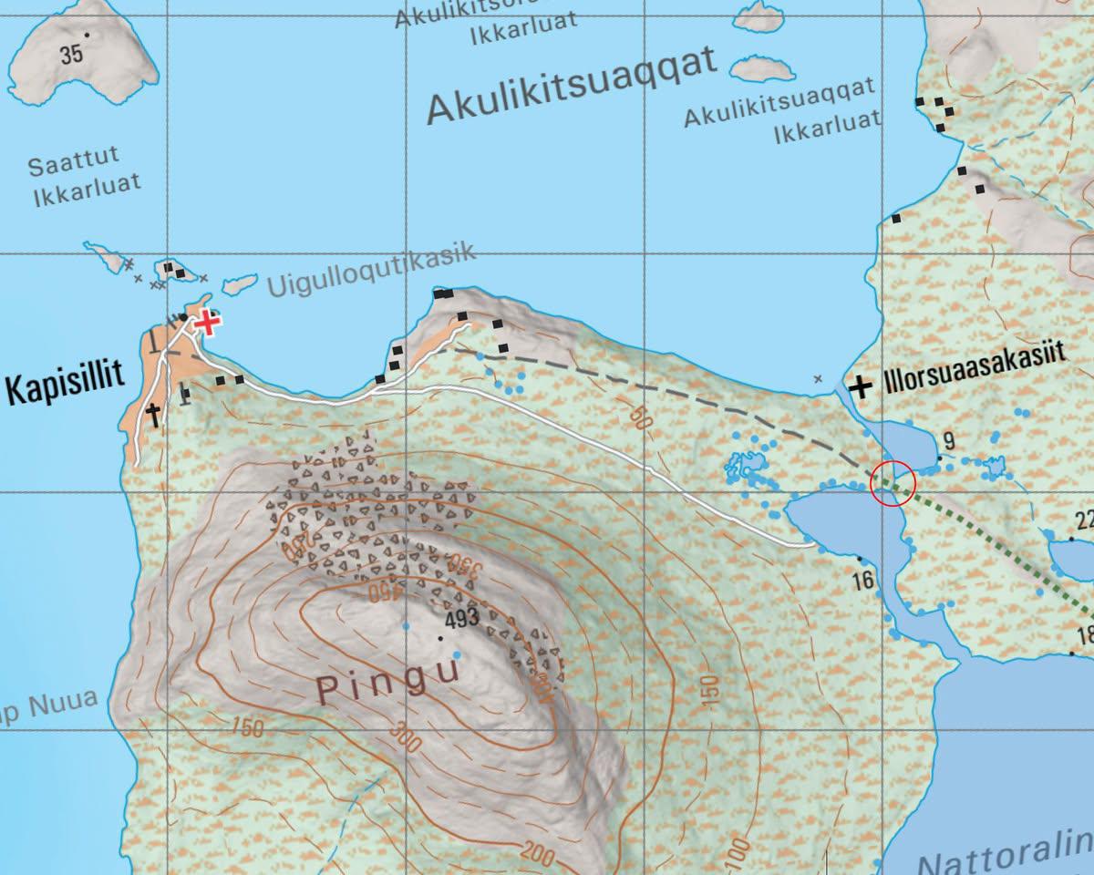 The bridge will be established between the lake and the rivers, north of Nattoralinnguit Lake and Illorsuaasakasiit near Kapisillit. The bridge will have a length of approx. 21 meters and a width of 1.4 meters. A drawing and the proposed location of the bridge can be seen in the application material.